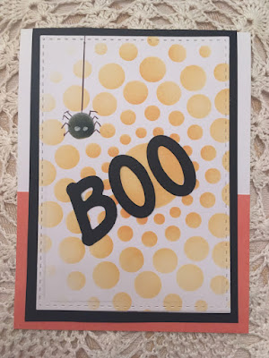 This week's Mod Squad challenge led to lots of fun. I blended ink through a Gina K Designs stencil, and set out to step it up by masking one circle, inking it in black, and doodling some spider features. The letter dies are from my scrapbook stash and helped maintain a little whimsy.